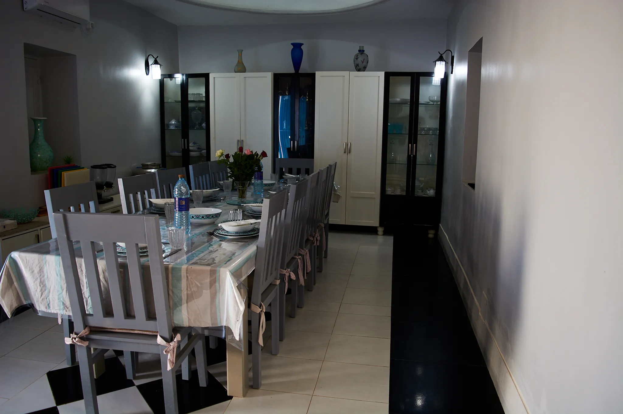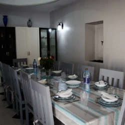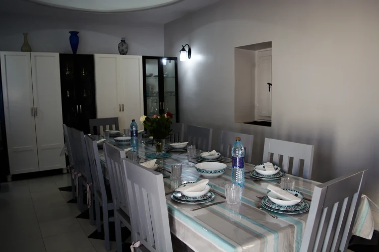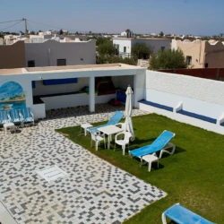 Nichée au cœur de Djerba, cette maison allie architecture traditionnelle et équipements contemporains pour un séjour inoubliable. Avec ses 8 chambres spacieuses, ses 6 salles de bain modernes et sa capacité d’accueil allant jusqu’à 12 personnes, elle est idéale pour des vacances en famille ou entre amis.