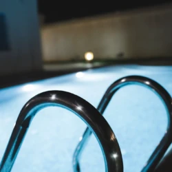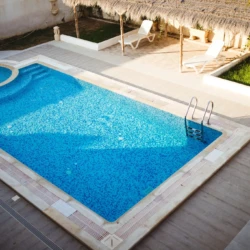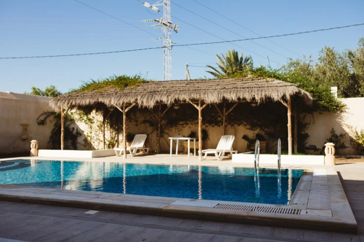 Sanitaires extérieurs avec douche pour plus de confort au bord de la piscine.
