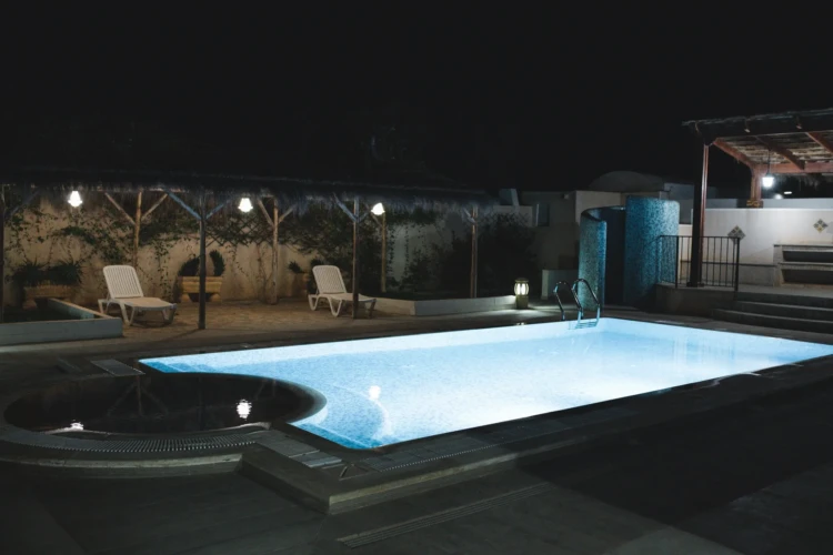 Piscine à débordement avec jacuzzi, parfaite pour vos moments de détente.